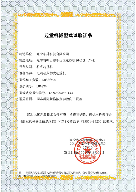 LDP電動單梁型式試驗合格證